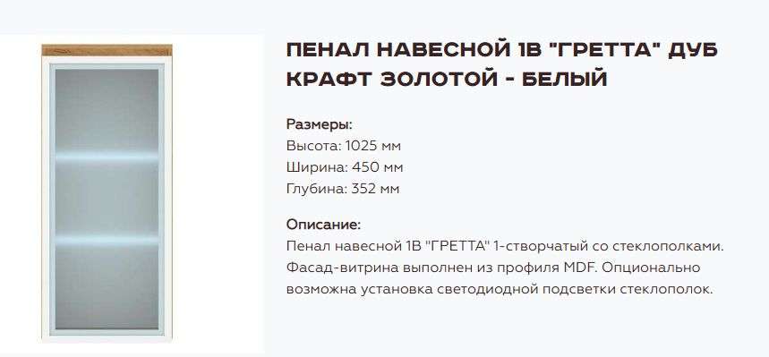 - ГРЕТТА Пенал-витрина 1В1С Крафт золотой-Белый - 9000 руб.