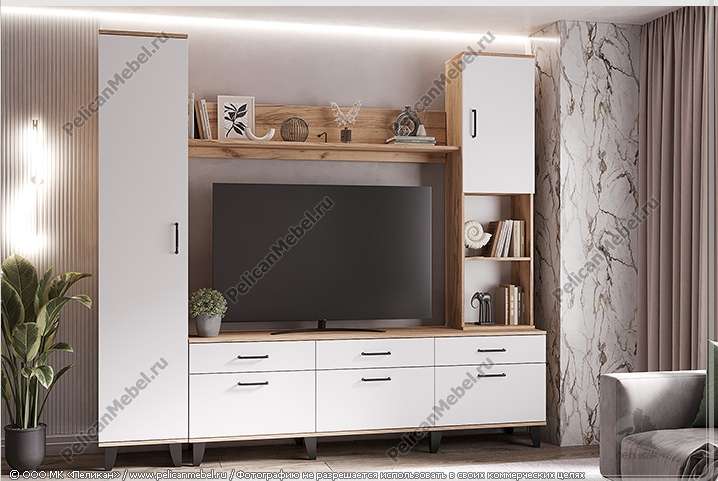 Модульная гостиная «Крафт» отличается своей компактностью, легкостью, функциональностью. Стенка подойдет как в малогабаритную квартиру, так и в просторную гостиную.