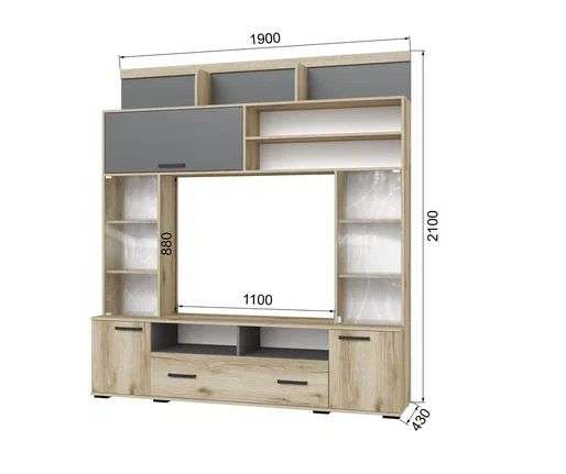 Размер: (ВхШхГ) 2100х3100х470 мм, ниша для ТВ: 1000х800 мм.