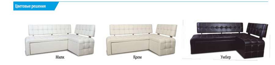Цветовая гамма: Экокожа - МИЛК, КРЕМ, УМБЕР. Велюр: Лагуна, Графит, Коньяк, Латте, Мохито.
