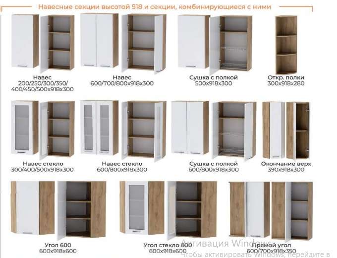- Высота верхних шкафов 718 мм. или 918 мм. Глубина 300мм.