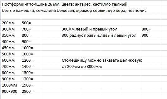 - Столешница (цвет: Антарес): 2100х26х600 мм (левый угол радиус), 2600х26х600 мм.