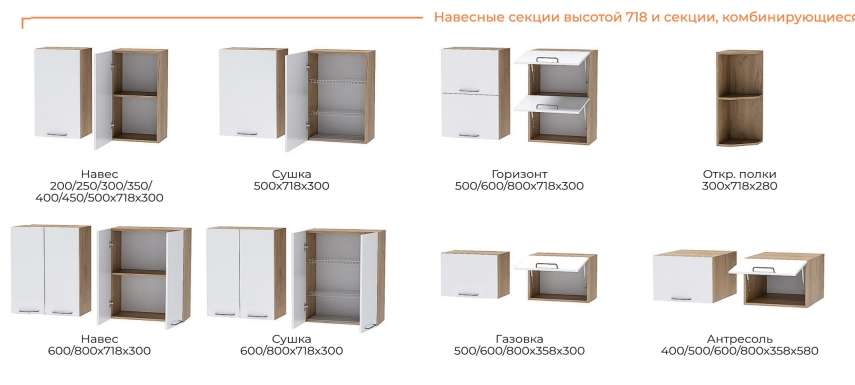Высота верхних шкафов 718 мм. Глубина 300мм.