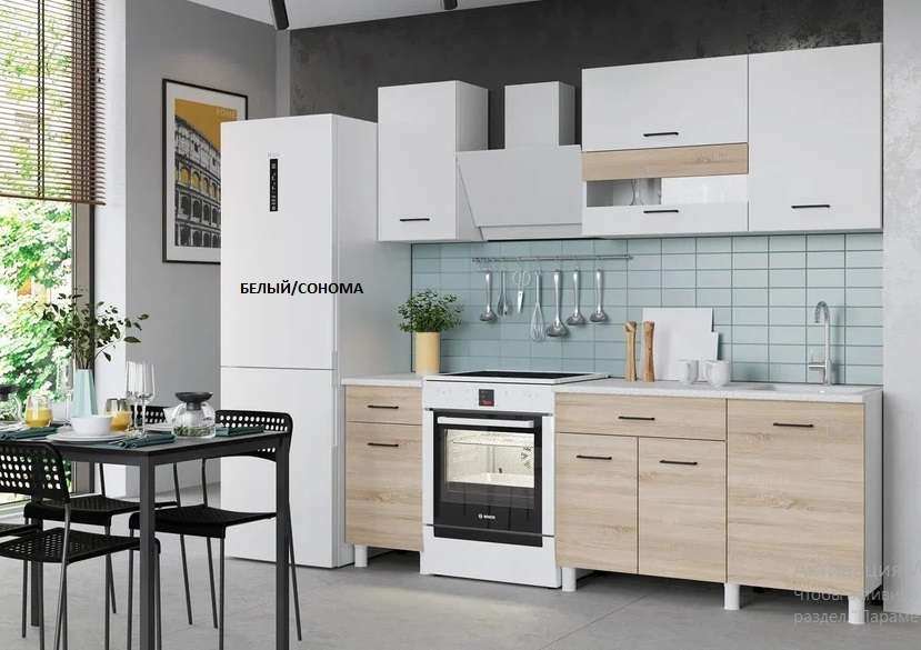 Стоимость кухни с фасадами ЛДСП - 17000 руб. (Белый/Бетон, Белый/Дуб золотой, Крафт белый/Крафт Серый, Дуб золотой/Серый графит, Белый/Сонома)
