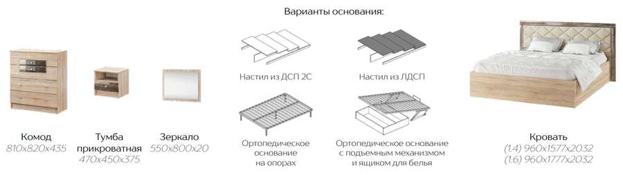 Модули, входящие в спальный гарнитур Мадлен и их стоимость: